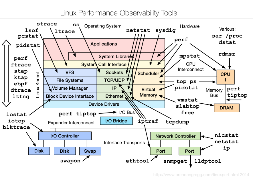 网上有人总结了Linux性能工具大全的神图,把Linux性能的方方面面都包含在里面。如下