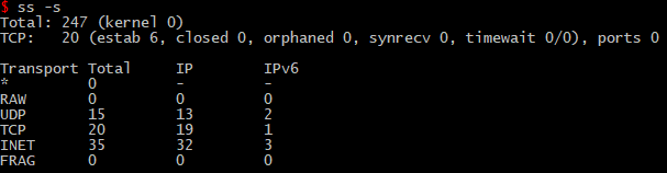 另外,当服务器的连接非常大的时候,使用netstat就非常不方便了,这个时候就可以使用ss(Socket Statistics)命令替代netstat。